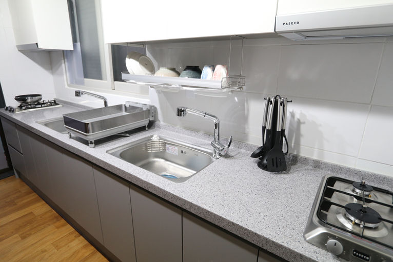 부엌은 4층에 있으며, 한 층에 화장실 2개, 샤워실 3개로 분리되어 있어요.